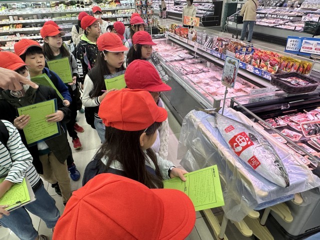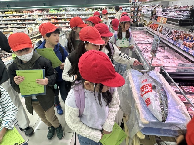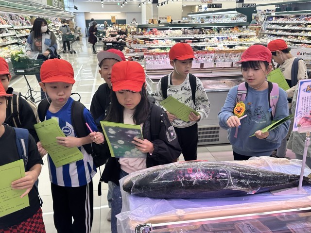 今日は3年生が見学に来るということで、特別にお刺身にする前のぶりを展示していただきました。