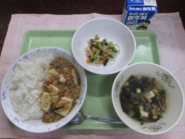 「おとうふ 2ちょう」という絵本にでてくる、マーボー豆腐を再現しました。