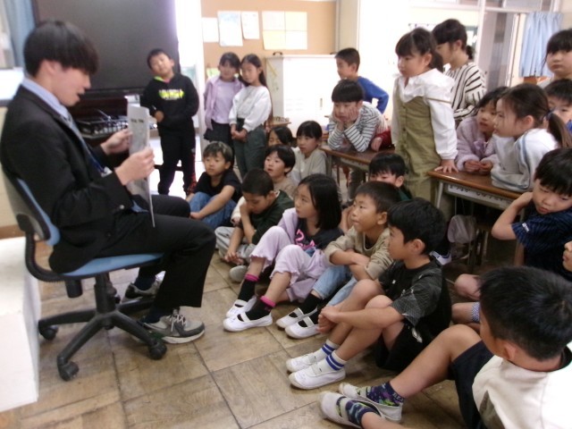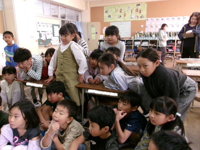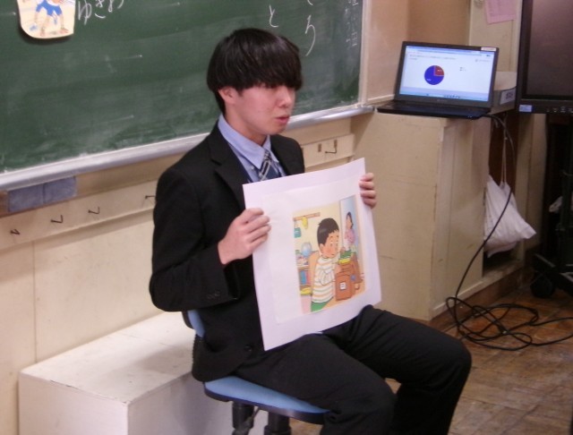 先生が紙芝居で今日の物語を聞かせてくれました。