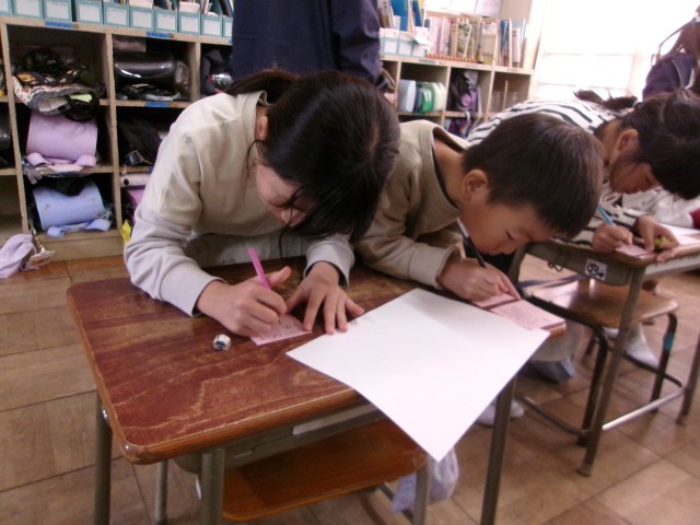 友達の良いところを付箋に書いて、机に張ってあげましt。