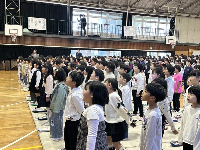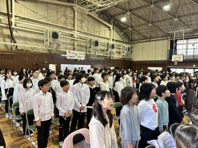 元気いっぱいの全校合唱。