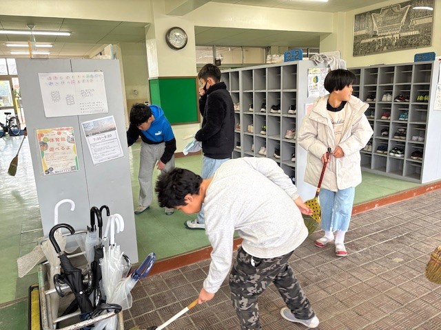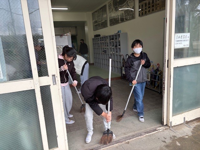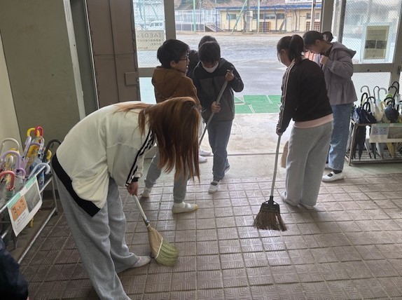 6年生が登校し、気持ちよく教室にいけるように。