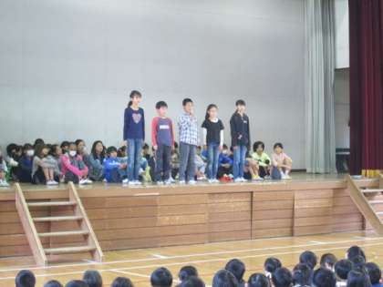 児童の自主的な活動の場として、委員会活動を実施しています。今日の集会は、高学年の委員長、副委員長から活動内容の説明と協力の依頼がありました。