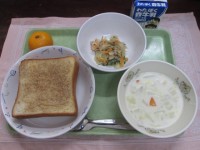 今日の給食は、ひじきピラフ 牛乳 ほうれんそうのキッシュ やさいスープです。