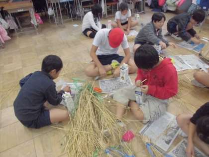 脱穀の方法は、実行委員が調べていくつかの方法を紹介し、実際に体験しました。
