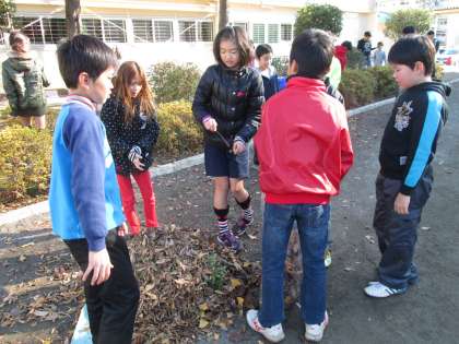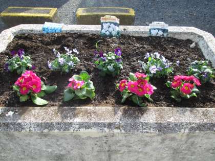3年生のPTAの方には、落ち葉拾いのあと、花壇にお花を植えていただきました。