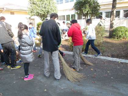今日の美化の日は、校庭の落ち葉拾いでした。