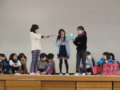 4年生は、練習の時から道具を持ってきて宣伝の手本となったクラスも登場。