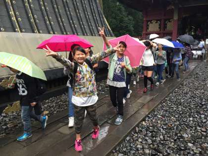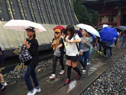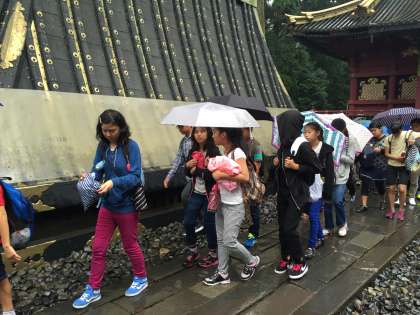 東照宮見学の様子です。雨が弱まってきました。