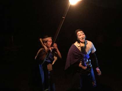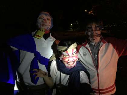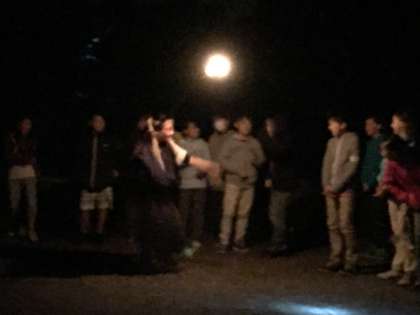 キャンプファイアーの点火は、謎の原住民とドラえもんが登場して、大いに盛り上がりました。