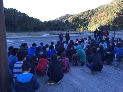 朝の会です。予定より10分早い集合でしたが、がんばって集合しました。