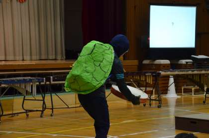 ・・・している子もいれば、亀になりきっている先生に大喜びの子もいました。