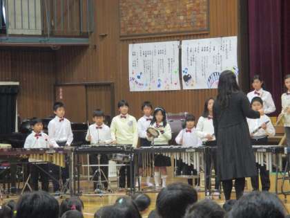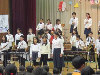 今年度は、3年生から6年生までの52名で活動しています。「心をひとつに、感動を届けよう♪」をモットーに、毎朝早起きして練習に取り組んできました。会場が、清水ブラスサウンドに包まれました。