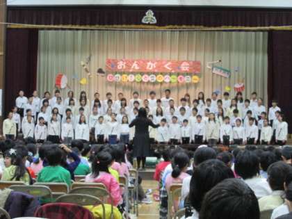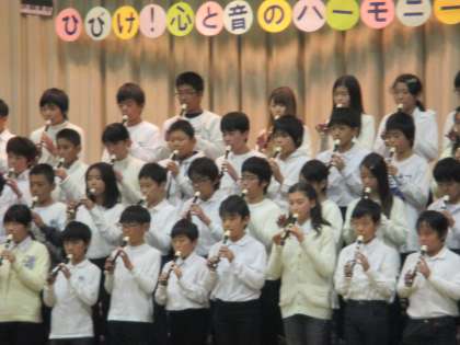 きれいに響くリコーダー奏の「カノン」は、6パートに分かれて演奏しました。東日本大震災の復興を願って生まれた合唱「花は咲く」。下の学年にもその思いは感動として届いたようです。勇壮な和太鼓で始まる「八木節」は、最高学年の威厳たっぷりで、たくさん練習をしてあんな風に演奏したい、という感想を聴くことができました。