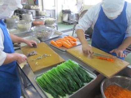 食室で一生懸命つくりました、沢山の野菜が入っています」