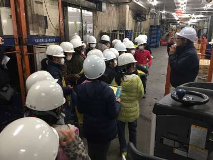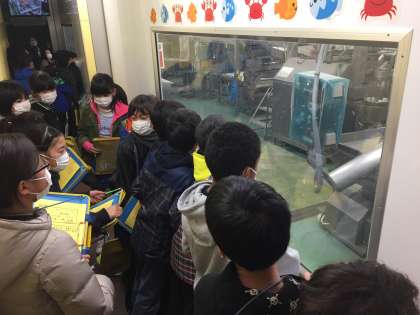日本水産の見学の様子です。カニ風味のかまぼこの工場の見学やマイナス20度の冷凍庫に入れてもらいました。