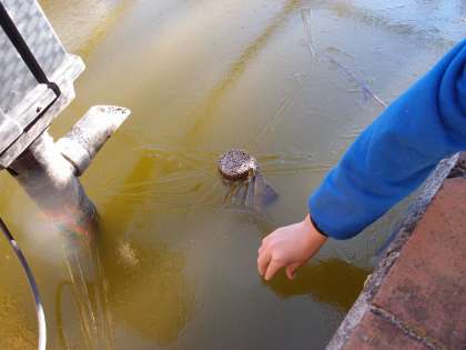 寒かった今週は、学校のカメの池が