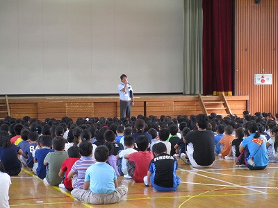 そして、「いじめはどんな理由があっても絶対に許されることではありません。清水小学校のみなさんを、いじめられる子、いじめる子、いじめを見て見ぬふりをする子にさせないために、先生たちも本気で取り組んでいきます。みなさんも、もてる力を全部使っていじめをなくしていきましょう」とお話をしました。
