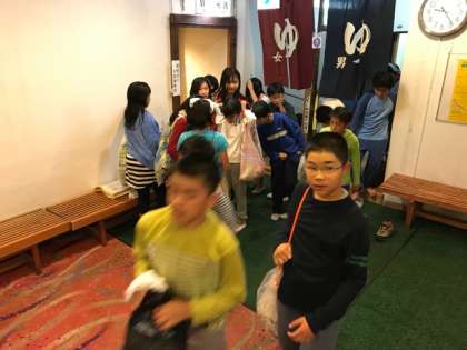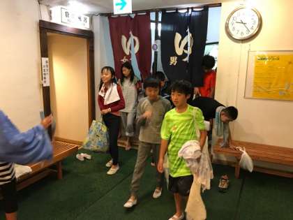 入浴タイムです。温泉につかってみんなリフレッシュした顔をしています。