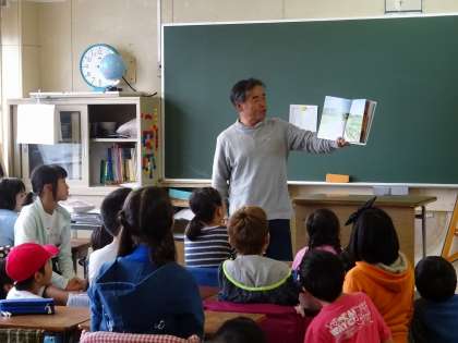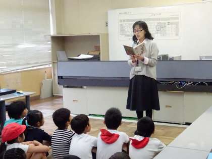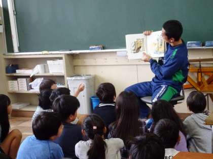 読書月間の取り組みの一つとして、教員による読み聞かせをしています。