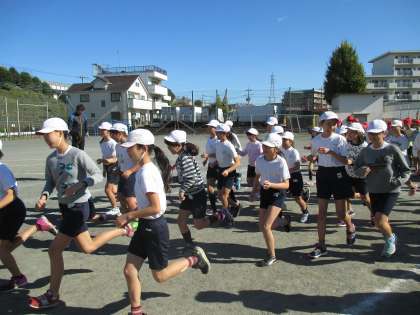 校庭と学校外周(1600m)を最後まで走りきり、とても良い顔でゴールしていました。また、友達の応援をして、「速くなったね。」「最後まで走っていたね。」と声を掛け合う様子が見られました。