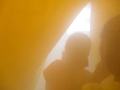 ☆辺りはほとんど見えないので、壁をさわりながら、離れず避難すること。