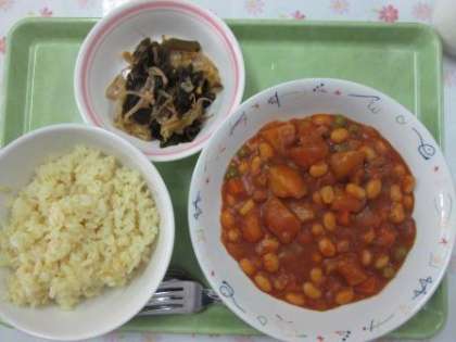 〜9月12日(水)の給食〜 公開日 2018/09/13 更新日 2018/09/13 給食 ☆献立名☆ ・カレー風味のガーリックライス ・チキンビーンズ ・コーンサラダ ・牛乳 「今日はカレー風味のガーリックライスです 子どもたちにもとても人気で沢山食べてく れました。」 いいね(0)