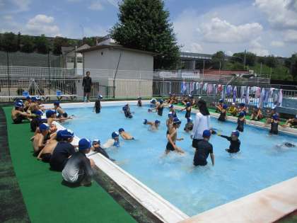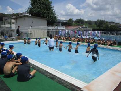 本日の3,4時間目は、プールに入りました。今までは、少し曇り空の中でしたが、今日は絶好のプール日和でした。