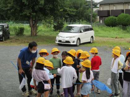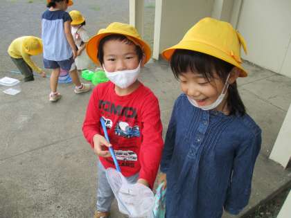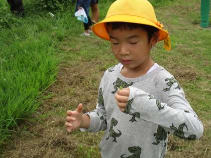 みんなで協力して、トンボやバッタを捕まえていました。