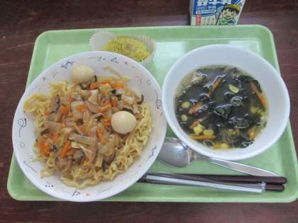 ☆献立名☆ あんかけ焼きそば 中華スープ スイートポテト 牛乳