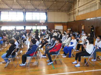 いよいよ音楽会が始まりました。5年生は、朝、集会室で声出しをして、体育館へ向かいました。高学年として、一年生の椅子を運ぶ仕事もありましたが、優しく声をかけていました。