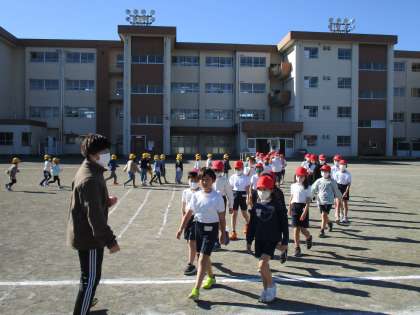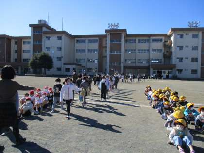 校庭にいるクラスもいましたが、一カ所に集まって