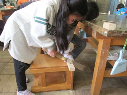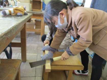 のこぎりで切る体験ができました。この技術を