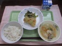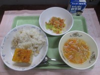 ☆献立名☆ わかめご飯 厚焼き卵 呉汁 きゅうりと大根の南蛮漬け 牛乳