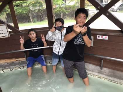 熱いお湯にも我慢強く 入っている子もいます。すごいな。