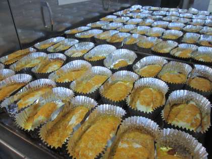 夕焼け小焼け焼きは、白身魚にマヨネーズとにんじん、白ごまのソースをに塗って焼き上げました。