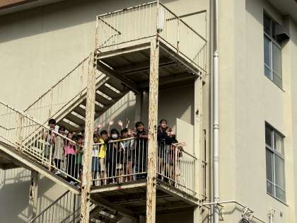 保護者の皆さんも見送りに