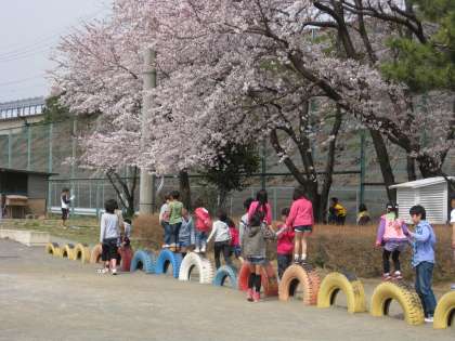 ○6年生に遊具の使い方を教えてもらいながら、楽しく遊びました。頼りになるお兄さん・お姉さんに手をつながれてとてもうれしそうでした。