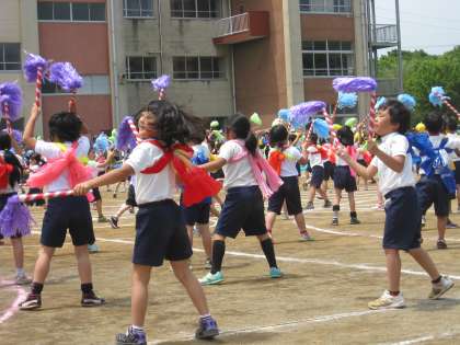 ○初めての運動会。2年生と一緒に「おまつりわっしょい」のダンスを生き生きと踊りました。徒競走やチェッコリ玉入れもやる気満々の様子で頑張りました。