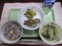 ☆献立☆大山おこわいかの香味炒めきゃべつのしょうが風味じゃが芋のそぼろ煮牛乳大山...