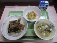 ☆献立☆はち大根と豚の角煮丼きゃべつのごまじゃこ和えじゃがいものみそ汁牛乳