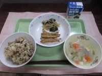 ☆献立☆ひじきごはんわかさぎの香り揚げもやしのからし和え呉汁牛乳寒い冬から3月こ...