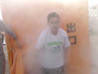 煙体験もしました。ものすごい煙で前がよく見えないそうです。もちろんこの煙は無害で...