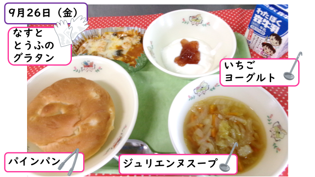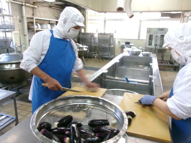 給食では八王子産のなすを使ってミートグラタンにしました🍆