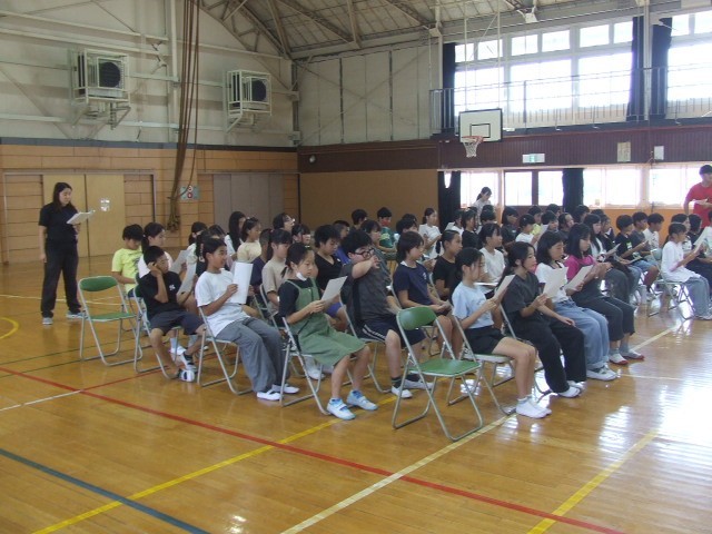 10月17日に挙行される創立50周年記念式典では、全校を代表して参列する5・6年生。今日から練習が始まります。式に臨む心構えを確認し、歌や呼びかけを流していきました。1回目ですが上々の出来栄えです。回数は少ないですが、しっかりと気持ちを入れながら練習し、当日を迎えていきたいと思います。
