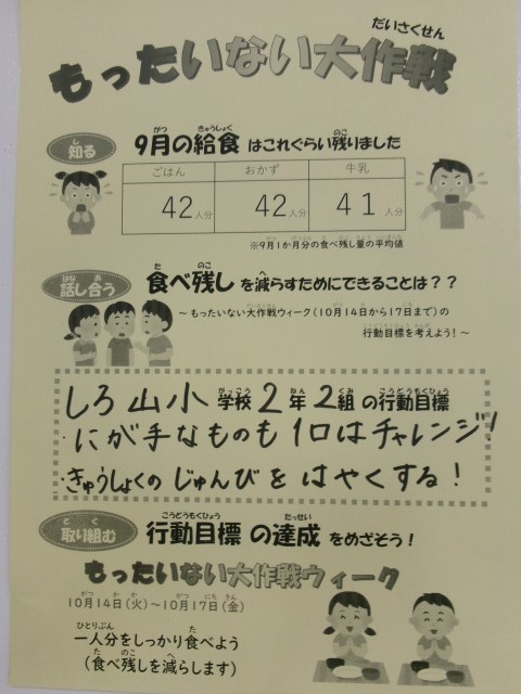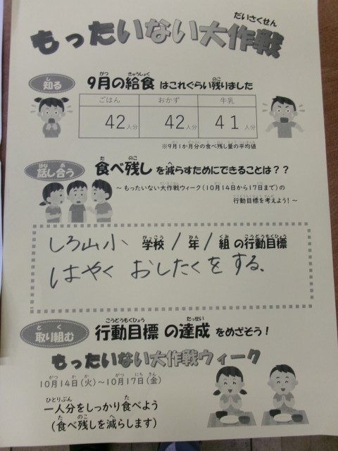 「もったいない大作戦」とは、八王子市の小中学校で食べる意欲を高めることや食べ物への感謝の気持ちをもつことを目的に食品ロスを減らす取組です。