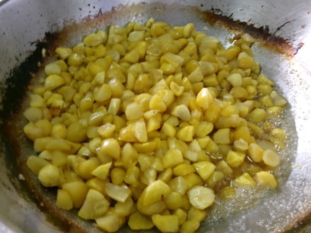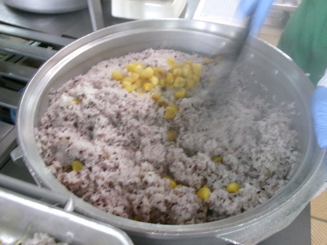 秋月ごはんは栗を甘く煮て黒米を入れて炊いたごはんと混ぜて作りました。