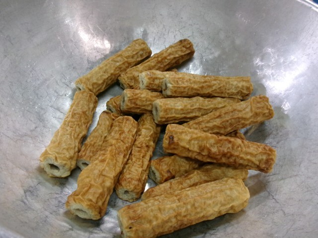 給食では鳥取県で作られている「あごちくわ」を使っておこわを作りました。