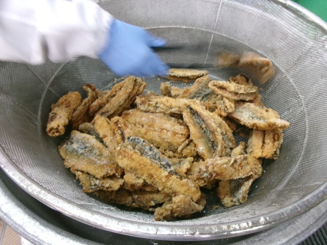 作り方は、さんまに片栗粉をまぶして油で揚げます。