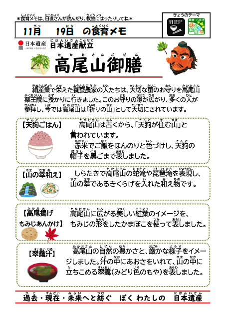 今日は日本遺産献立の「高尾山御膳」です🍁